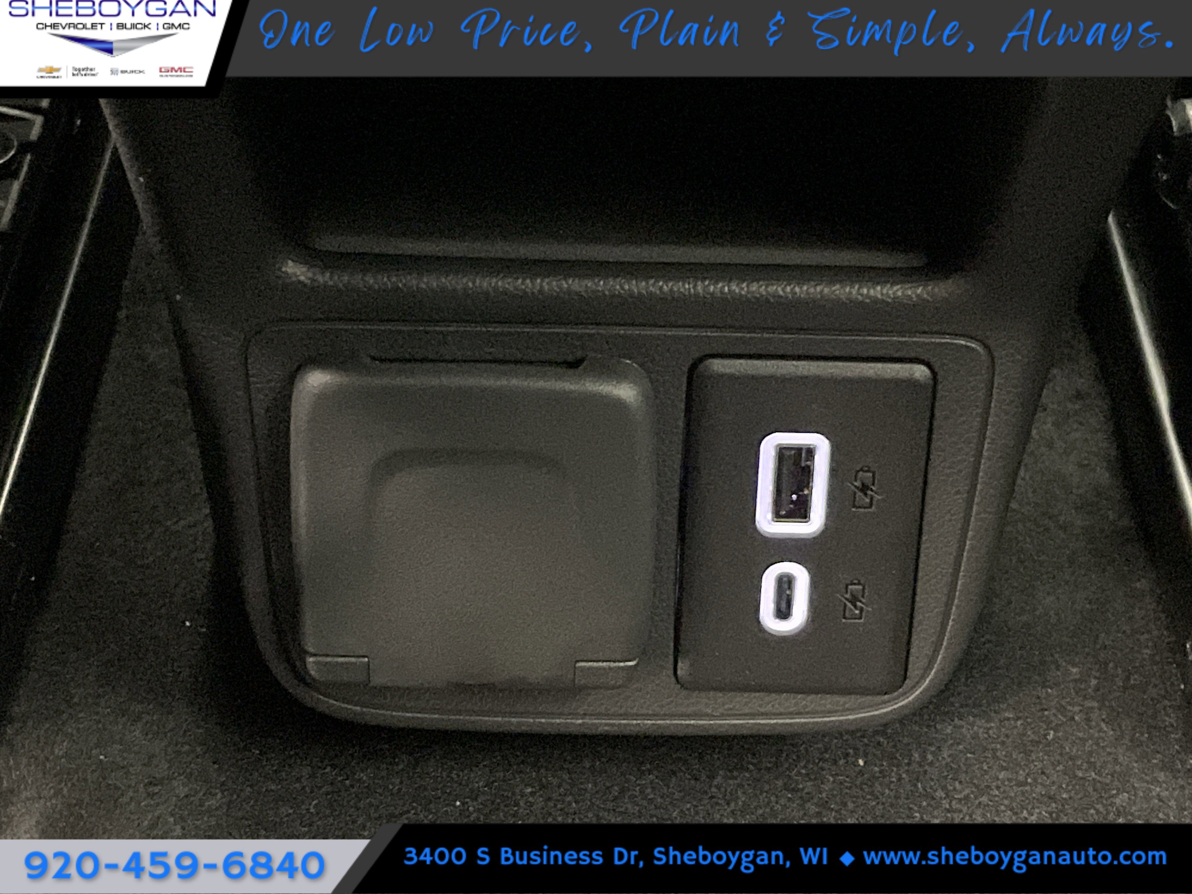 DRIVER CONFIDENCE PACKAGE includes (UKC) Lane Change Alert with Side Blind Zone Alert, (UFG) Rear Cross Traffic Alert and (UD7) Rear Park Assist, CONVENIENCE PACKAGE includes (C68) automatic climate control air conditioning, (USS) one type-A and one type-C charging only USB ports, (K4C) Wireless Charging, (KI6) 120-volt power outlet, (DD8) inside rearview auto-dimming mirror and (DMS) driver and front passenger illuminated vanity mirrors, covered, sliding visors (Also includes (A2X) driver 8-way power seat adjuster, (AL9) driver 2-way power lumbar, (DA5) rear center armrest and (TB5) power liftgate. , Wiper, rear intermittent, Windshield, solar absorbing, Windows, power with driver Express-Up/Down and front passenger and rear Express-Down, Wi-Fi Hotspot capable (Terms and limitations apply. See onstar.com or dealer for details.), Wheels, 17" (43.2 cm) High Gloss Black machined aluminum, Visors, driver and front passenger vanity mirrors, covered, sliding, Vehicle health management provides advanced warning of vehicle issues, USB ports, 2 one type-A and one type-C, located within the instrument panel.