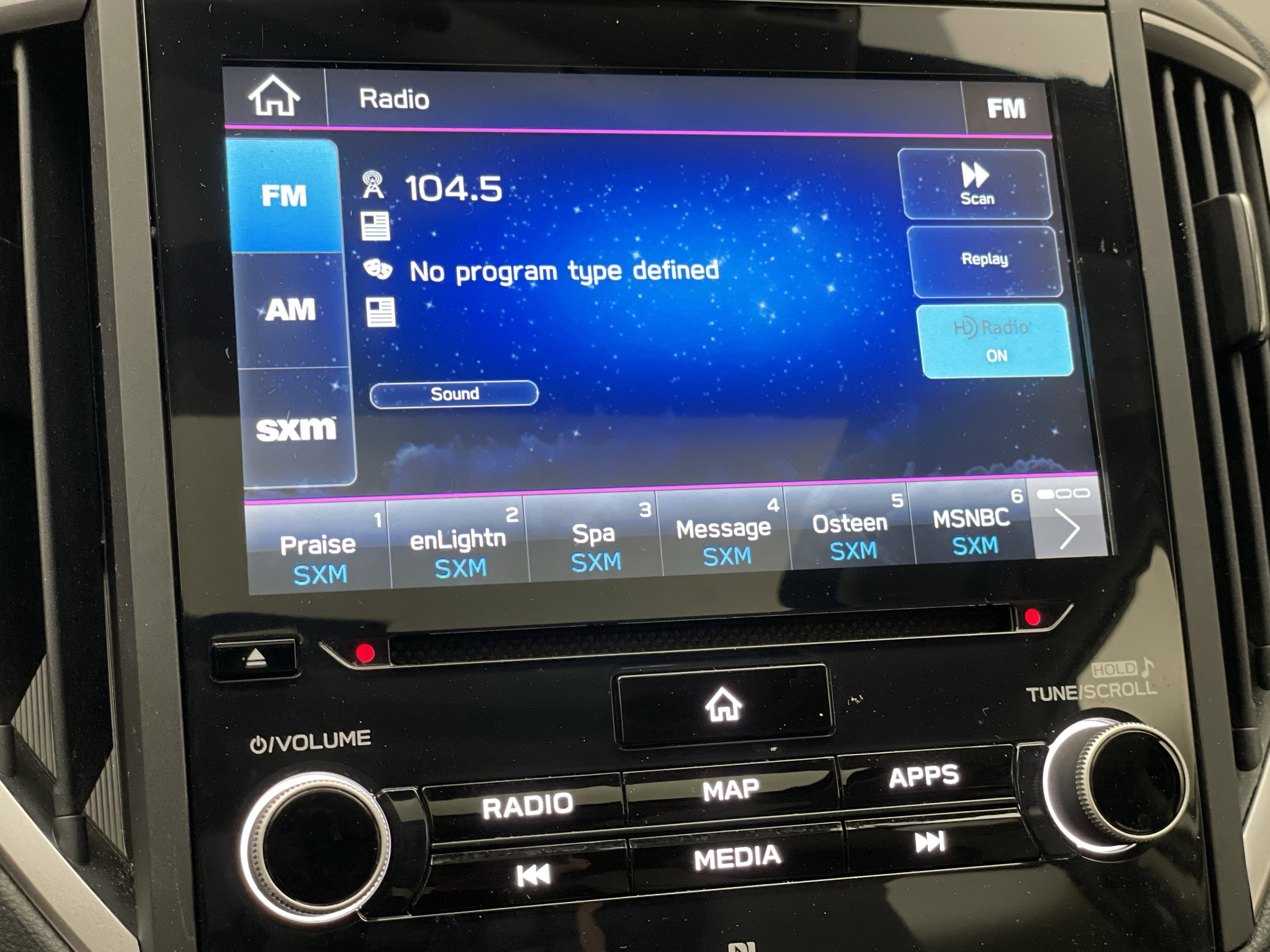 - Radio: Subaru STARLINK 8.0" Multimedia Plus System -inc: AM/FM stereo, HD Radio, single disc CD player w/MP3/WMA/CRR/RW file capability, multi-touch gesture high resolution display screen, voice activated controls, Bluetooth® audio streaming and hands-free phone connectivity, Bluetooth® hands-free SMS text messaging connectivity, Near Field Communication (NFC), iPod control capability, SiriusXM All Access Radio (4 months free trial/subscription required after), SiriusXM Travel Link (4 months free trial/subscription required after), smartphone integration: AHA, Android Auto, CarPlay, Pandora and STARLINK cloud applications, USB and Over The Air (OTA) audio system update, steering wheel audio and Bluetooth® control switches, 6 speakers (2 dash panel tweeter, 2 front door and 2 rear door), 3.5mm auxiliary input jack and front dual USB A input/charge ports